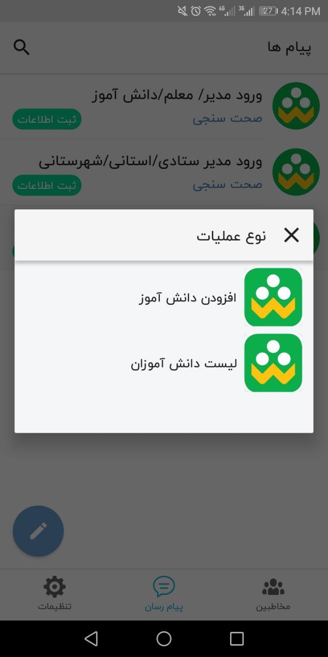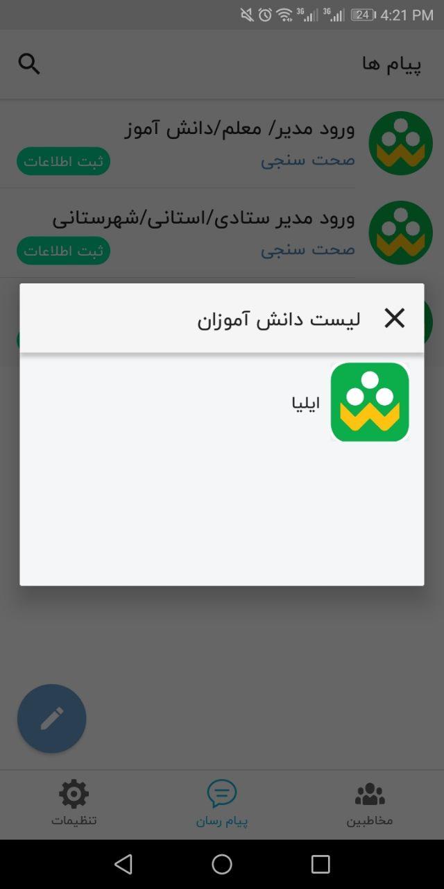 پس از وارد نمودن کد تائید به صفحه اصلی برنامه هدایت خواهید شد. اکنون با مراجعه به بخش تنظیمات در منوی تحتانی برنامه قادر به ارسال تصویر پرسنلی خود خواهید بود. در واقع تنظیمات پروفایل برنامه شباهت زیادی با سایر اپلیکیشنهای پیامرسان دارد. در بخش پیامها، 3 نقش کاربری شامل مدیر، معلم و دانشآموز تعریف شده است و کاربران بر اساس نقش خود بایستی یکی را انتخاب نمایند.