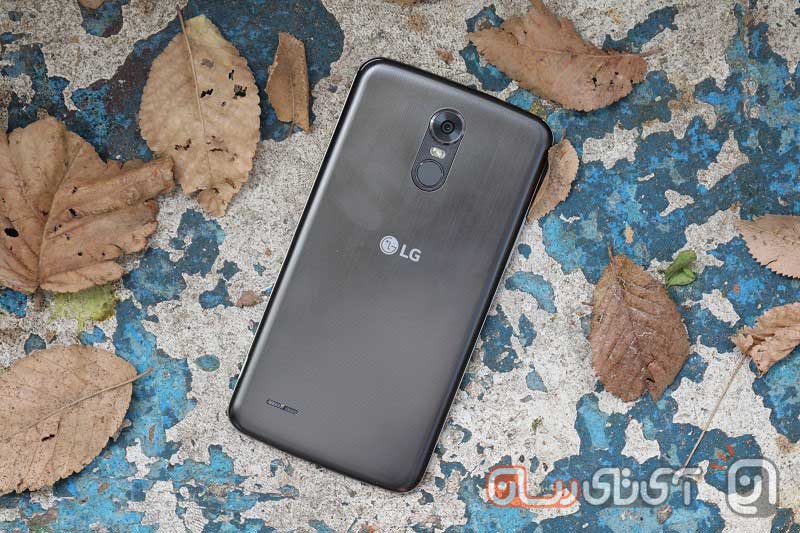 در قسمت بالایی قاب پشتی دکمه پاور، فلاش و دوربین نسبتا بزرگ الجی استایلوس 3 را میبینیم که چند میلیمتری از بدنه بیرون زده است. در مرکز هم لوگو الجی به چشم میخورد که کمی برجسته بهنظر میرسد؛ برجسته که نه اما حداقل هنگام لمس، آن را زیر انگشتان حس میکنید! در بخش پایینی این قاب نیز تک اسپیکر گوشی به چشم میخورد که محل قرار گیری آن تناسبی با گوشیهای امروزی ندارد.