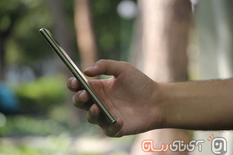 در سمت راست بدنه اصلی و کمی بالاتر از میانههای میدان، کلید عریض پاور دیده میشود که خب سنسور تشخیص اثر انگشت را در خود جای داده است. کمی بالاتر کلیدهای یکپارچه صدا را میبینیم که در جای خیلی خوبی قرار نگرفتهاند و شاید اگر انگشتان بلندی نداشته باشید، برای دسترسی به آنها با مشکل مواجه شوید. این کلیدهای یکپارچه به اندازه کافی از بدنه بیرون نزدهاند و در روزهای نخست کار با گوشی، خیلی راحت نمیتوانید پیدایشان کنید! کمی پایینتر از همه اینها نیز کلید اختصاصی شاتر دوربین جا خوش کرده که این روزها کسی به آن بها نمیدهد.