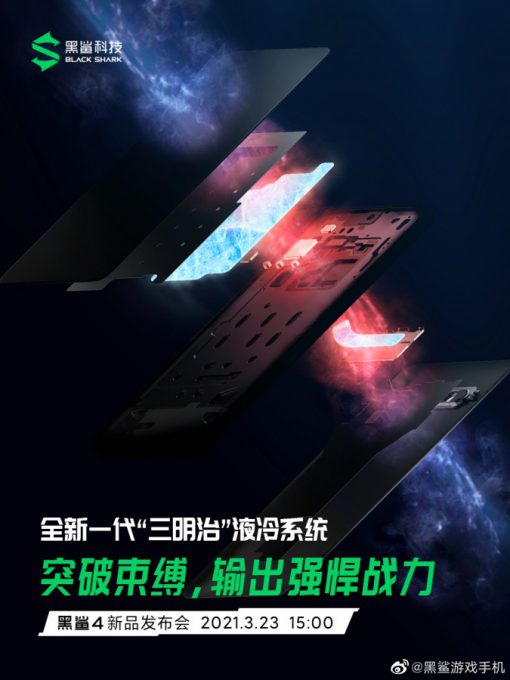 بعلاوه 2 پوستر منتشر شده تائید میکنند که توان پردازشی سری بلک شارک 4 از طریق تراشه اسنپدراگون 888 تامین خواهد شد. همچنین این هندستها از سامانه خنککننده پیشرفتهتر بهره خواهند برد؛ موضوعی که به کاهش دمای CPU تا حداکثر 18 درجه سانتیگراد کمک خواهد کرد. پوستر مربوط به تراشه اسنپدراگون 888 تصویر دیگری از پنل پشتی بلک شارک 4 را نمایش میدهد. بر این اساس پنل پشتی گوشی از دوربین با چیدمان افقی و لوگوی بزرگ و درخشان Black Shark میزبانی خواهد کرد.