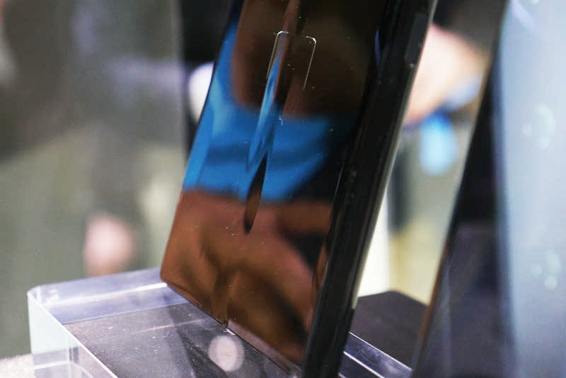 عکس گرفتن از این شیار به علت تدابیر امنیتی و سخت گیرانه سامسونگ بسیار سخت بود و نگهبانان از نزدیک شدن به محفظههای نگهداری گلکسی فولد و خم شدن و عکس گرفتن از آنها ممناعت میکردند. مشخص نیست آیا این سختگیریها صرفا برای محافظت از این هندست بوده یا سامسونگ میخواسته واقعیتی را از دید بازدیدکنندگان پنهان کند.