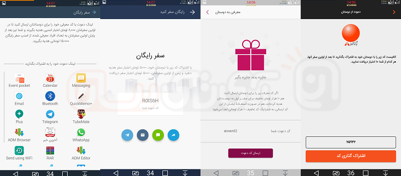 تمام این اپلیکیشنها به منظور افزایش محبوبیت خود، طی شرایطی خاص به شما سفر رایگان و یا اعتبار هدیه میدهند. در شرایطی ویژه و بسته به مکان و یا زمانی خاص، کدهای تخفیفی در اختیار شما قرار میگیرد که با آنها میتوانید حتی سفر خود را به صورت کاملا رایگان انجام دهید. اما یکی از سادهترین راهها برای دریافت تخفیف، دعوت از دوستان است. در ادامه به مقایسه این بخش میپردازیم: