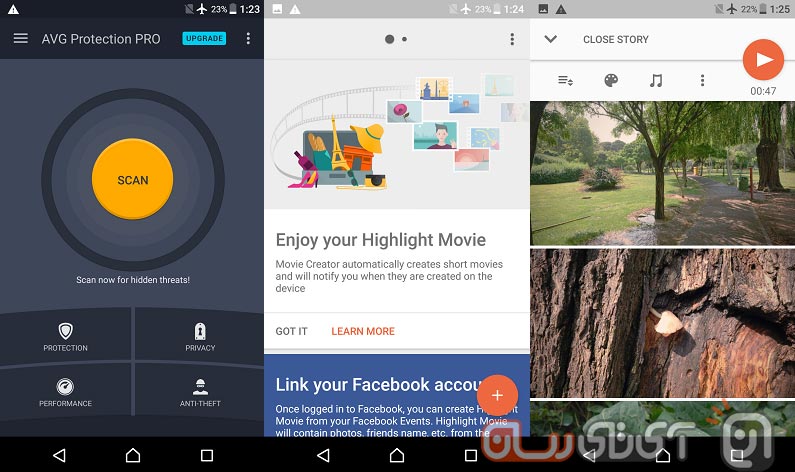 اگر در صفحه نخست به سمت پایین سوایپ کنید، میتوانید اپلیکیشنهای پرکاربرد خودتان را ببینید و یا حتی میان تمام اپهای خودتان جستجو کنید. سونی اپلیکیشنهای نسبتا زیادی نیز به صورت پیشفرض بر روی جدیدترین محصولش نصب کرده است. بهعنوان مثال میتوان به آنتیویروس AVG Protection اشاره کرد. از یک اپ جالب با نام Movie Creator نیز در این گوشی استفاده شده که توسط آن میتوان با تصاویر و موزیکهای موجود در گوشی کلیپهای ویدئویی جذابی را ساخت.