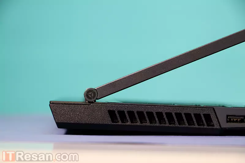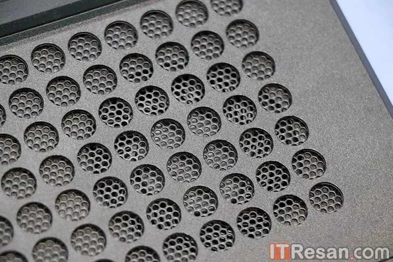 در کل برای این لپتاپ سه خروجی هوا تعبیه شده است. یک خروجی در لبه سمت راست و دو خروجی هوا به صورت سرتاسری در لبه پشتی لپتاپ قرار گرفته است. همچنین هوا از زیر لپتاپ وارد میشود و نگه دارندههای زیری لپتاپ کمی مرتفع طراحی شدهاند تا هوا به راحتی وارد شود.