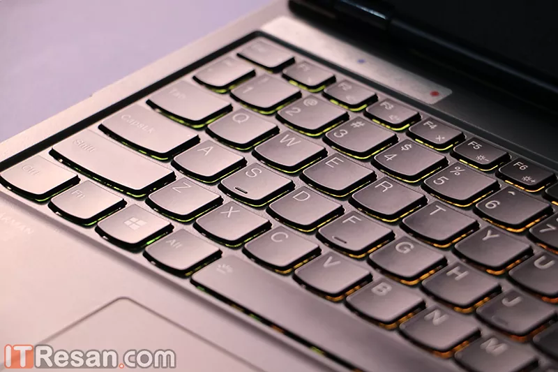 تمامی دکمههای این کیبورد در یک مستطیل جای میگیرند و تنها دکمههای جهت کمی از آن قالب خارج میشوند. همچنین قابل اشاره است که دکمههای جهت نسبت به دیگر دکمهها کوچکتر طراحی شدهاند که این روزها امری طبیعی در طراحی لپتاپهاست.