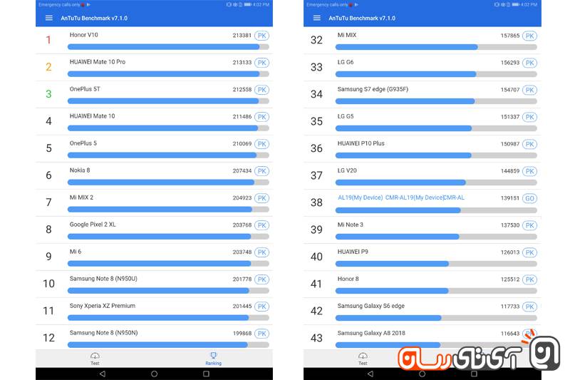 برای این آزمایشها مطابق روال همیشگی برای دستگاههای اندرویدی به سراغ استفاده از دو بنچ مارک استاندارد و مرجع GeekBench و AnTutu رفتیم که در مورد نخست، بنچ مارک بهصورت تکهستهای و چندهستهای روی تبلت هواوی مدیا پد M5 پرو اعمال شد. نتیجه به دست آمده در بخش تکهستهای بنچ مارک GeekBench شاهد کسب امتیاز 1198 توسط این مدل بودیم که در عمل یک رقم متوسط به حساب میآید. همانطور که در تصاویر مشاهده میکنید، رقبای این تبلت در بازار توانستهاند تا امتیازهای نسبتا بهتری را به دست بیاورند که این امر به اندکی قدیمی بودن سختافزار تعبیه شده روی تبلت هواوی مدیا پد M5 پرو باز میگردد. برای درک بهتر ناامیدکننده بودن این رقم کافی است بدانید که محصولاتی مانند گلکسی نوت 5 توانستهاند تا در این بخش امتیازی بالاتر (1294) کسب کنند.