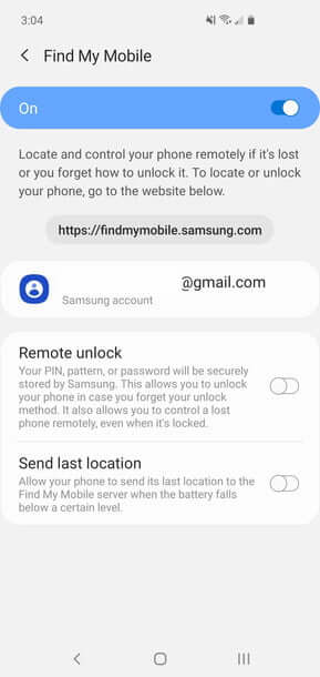 اگر یک گوشی سامسونگ دارید (همانند گلکسی S10)، آنگاه میتوانید از سرویس Find My Mobile شرکت سامسونگ بهره جویید. جهت استفاده از این سرویس باید یک حساب سامسونگ داشته باشید. شما میتوانید این ویژگی را در قسمت “Settings > Biometrics and security > Find My Mobile” پیدا کرده و سپس آن را به حالت فعال درآورید. همچنین در اینجا میتوانید به دو ویژگی “Remote unlock”و “Send last location” نیز اجازه بدهید. با استفاده از Remote unlock، سامسونگ پین، گذرواژه و یا الگوی قفل شما را ذخیره میکند، بنابراین در مواقع فراموش کردن هرکدام از این موارد و یا جهت کنترل از راه دور دستگاه خود، میتوانید از این ویژگی بهره ببرید. قابلیت Send last location نیز آخرین موقعیت مکانی گوشی شما را به سرورهای سامسونگ میفرستد، بنابراین در هنگام تمام شدن باتری میتوانید از آخرین موقعیت گوشی خود مطلع شوید، پس فعال کردن این ویژگی قطعا ارزشش را دارد. همچنین میتوانید در آدرس “https://findmymobile.samsung.com” با استفاده از حساب خود وارد شده و سپس به ردیابی گوشی یا تبلت سامسونگ گم شده بپردازید.