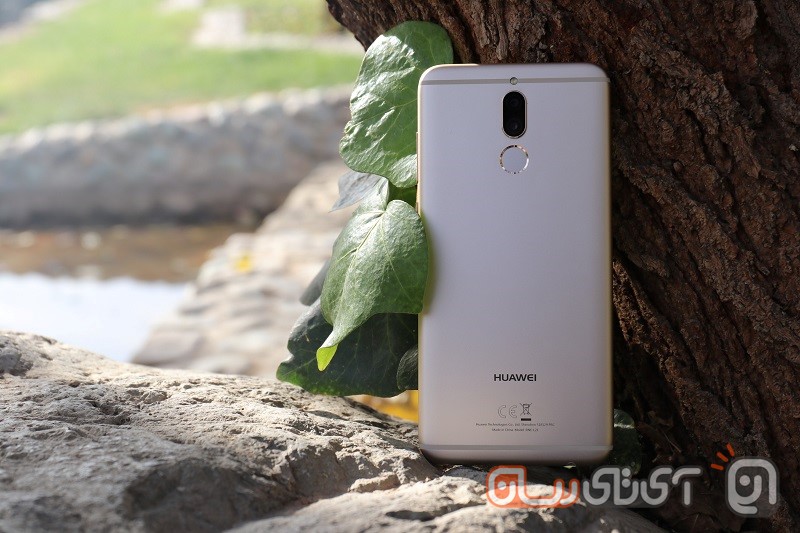 اگر گوشی را به پشت برگردانیم، نخستین چیزی که خودنمایی میکند، دوربین دوگانه با چینش عمودی و بیرونزدگی قابل توجه در بخش بالایی است. ظاهرا ضخامت 7.5 میلیمتری کار دست هواوی داده و نتوانسته تا دوربین را در بدنه جای دهد. بنابراین دو لنز گوشی چند میلیمتری بیرونزدگی دارند و در صورتی که گوشی را بر روی یک سطح صاف قرار دهید، بخش بالایی آن به سطح نزدیک هم نمیشود چرا که لنز گرامی در حال تحمل فشار وارده از طرف گوشی به سطح است!