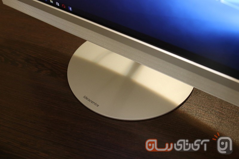 خوشبختانه شما میتوانید تا این دستگاه را در زاویههای مختلف قرار دهید؛ این یعنی با یک فشار معمولی میتوان زاویه نمایشگر را تغییر داد. زمانی که Ideacentre خاموش است، گمان میکنید که با یک صفحه کاملا بدون حاشیه طرف هستید اما پس از روشن شدن، چند میلیمتری حاشیه در اطراف آن دیده میشود. در زیر نمایشگر اما حاشیهها کمی بیشتر از حد معمول است چرا که اسپیکر دستگاه در همان قسمت قرار گرفته تا لنوو استفاده مناسبی از فضا کرده باشد.