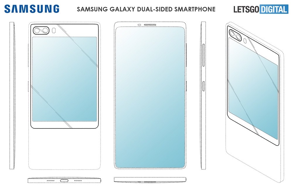 شاید همین موضوع باعث شد تا سامسونگ هم به بررسی نزدیک نمایشگرهای دوگانه بپردازد. وبسایت LetsGoDigital نیز موفق شد تا پتنت مشابهی از سامسونگ را پیدا کند که نمایشگر دوگانه حفرهدار با دوربین دوگانه را به نمایش میگذارد.