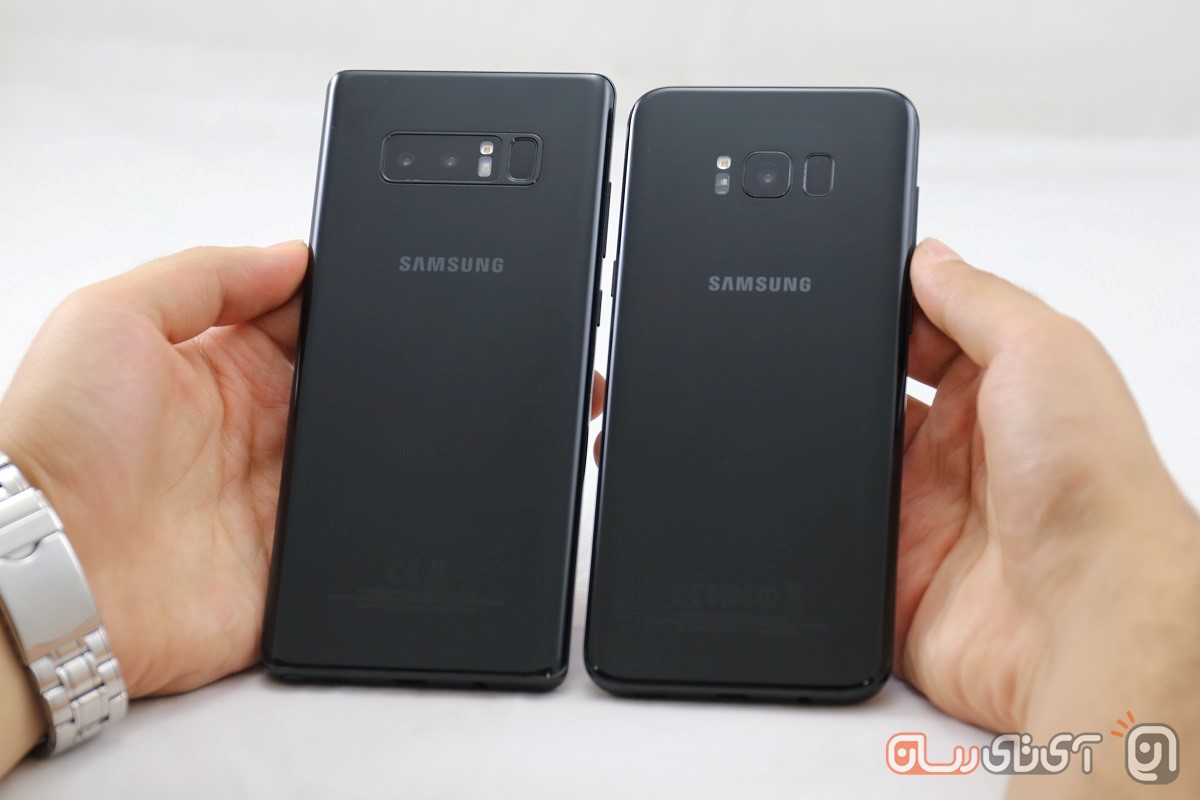 به طور کلی نمایشگر نوت 8 آنقدر شفاف و خیره کننده است که توجه هرکسی را به خودش جلب میکند و تقریبا هیچ ایرادی نمیتوان به آن گرفت. در ادامه میتوانید کیفیت نمایشگر این مدل را با پرچمدار دیگر سامسونگ مقایسه کنید (سمت راست گلکسی نوت 8 و سمت چپ گلکسی S8 پلاس سامسونگ):