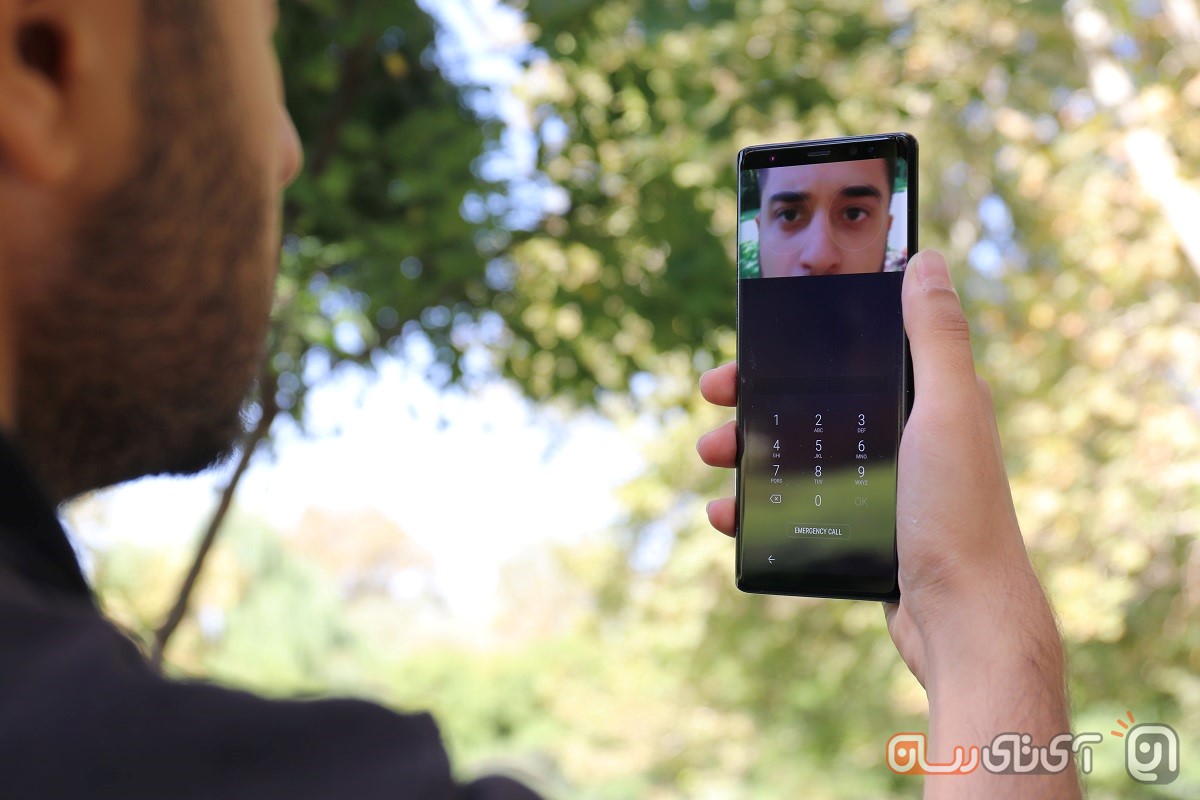 علاوه بر این، سامسونگ از ویژگی تشخیص چهره نیز برای نوت 8 استفاده کرده تا به کمک آن بتوانید قفل نمایشگر را باز کنید. این ویژگی گرچه به راحتی فریب نمیخورد اما دقت و سرعت کافی را هم ندارد ضمن اینکه امنیت آن نیز همچون اسکنر عنبیه چشم بالا نیست. با این حال در تستهای ما و با نشان دادن عکس صاحب گوشی نیز نتوانستیم نوت 8 را فریب دهیم و قفل گوشی را باز کنیم.