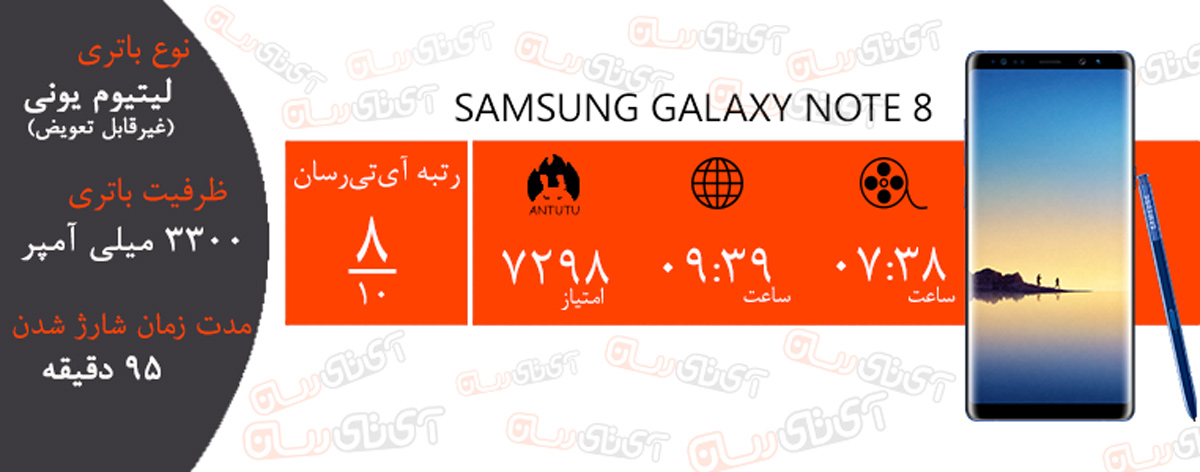 یکی از اصلیترین قسمتهای نوت 8 همین باتری است. جایی که سال گذشته با بیدقتی ساخته شده بود و موجب شد نوت 7 وداع تلخ و زود هنگامی با بازار داشته باشد. حالا سامسونگ ریسک نکرده و از یک باتری 3300 میلیآمپر ساعتی استفاده کرده که نسبت به نوت 7 حجم کمتری را به کاربر ارایه میدهد. جالب است بدانید که با توجه به سایز بیشتر نوت 8 نسبت به گلکسی S8 پلاس، این مدل حتی از پرچمدار سری S نیز باتری کم حجمتری دارد.