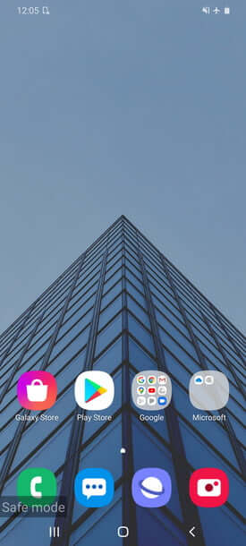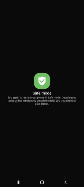 - پس از اینکه عبارت “Safe mode” را در گوشه پایین سمت چپ مشاهده کردید، آنگاه میتوانید کلید کاهش حجم صدا را نیز رها کنید.