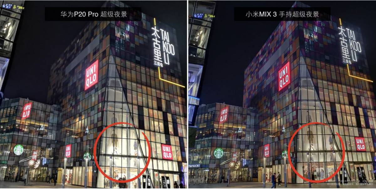 شیائومی برای بهبود تصویربرداری در این اسمارتفون از تکنیک عکسبرداری پی در پی استفاده میکند، این موضوع سبب بهبود تصاویر ثبت شده توسط این اسمارتفون شده است. در تصاویر بالا میتوانیم تصاویر به ثبت رسیده در طول شب به وسیله می میکس 3 را در مقایسه با هواوی P20 پرو مشاهده کنیم.